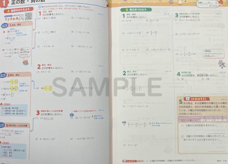 サンプル画像(内容は1年版です)