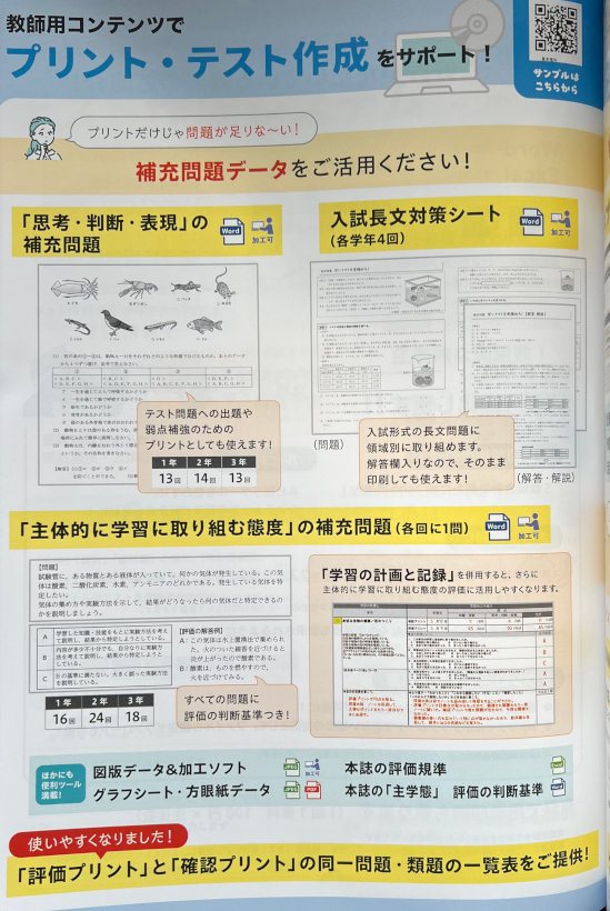 ・思考・判断・表現の補充問題、主体的に学習に取り組む態度の補充問題、本誌「主体的に学習に取り組む態度」問題の判断基準などをご用意しております。
