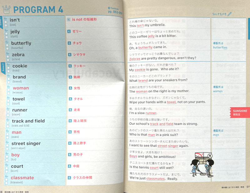 イラストを使い、英文の形だけでなく場面やイメージも一緒にインプットします。