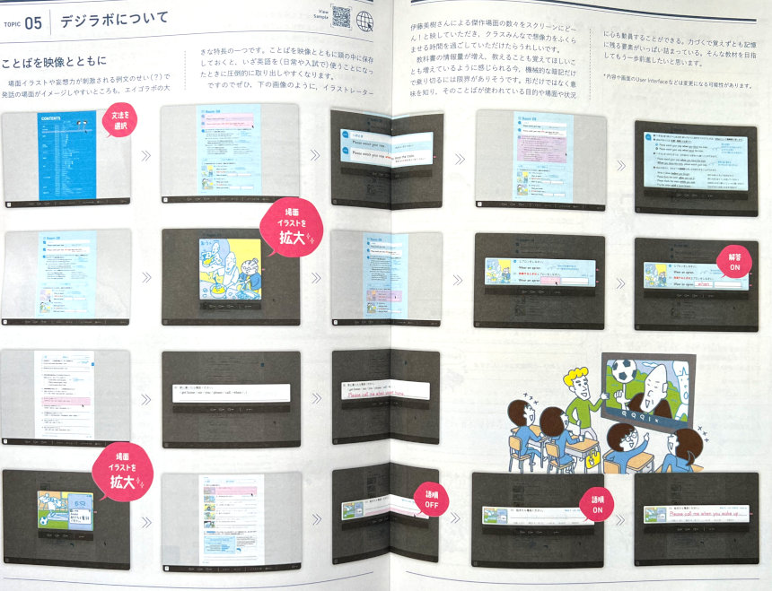 ・場面イラストを拡大表示、解答のON・OFF、語順のON・OFFなどが簡単にできます。