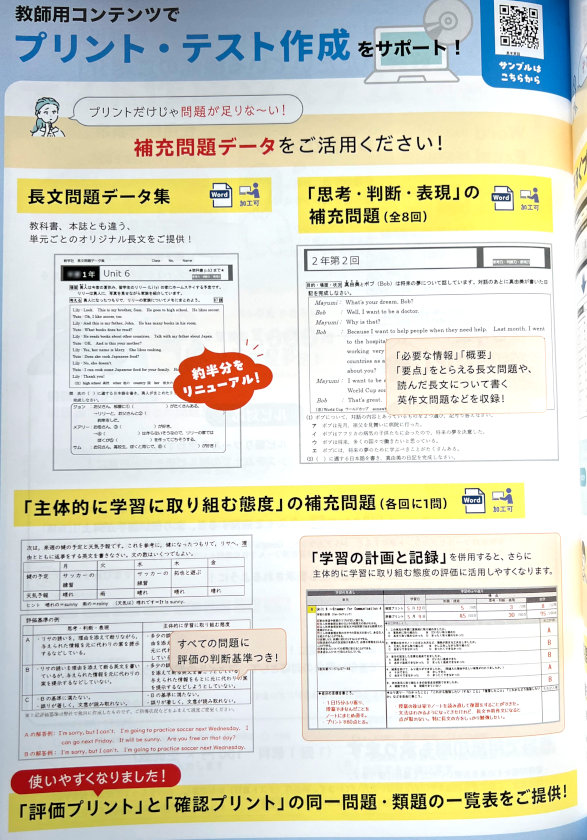 ・教師用コンテンツには主体的に学習に取り組む態度の補充問題・評価基準を追加しております。