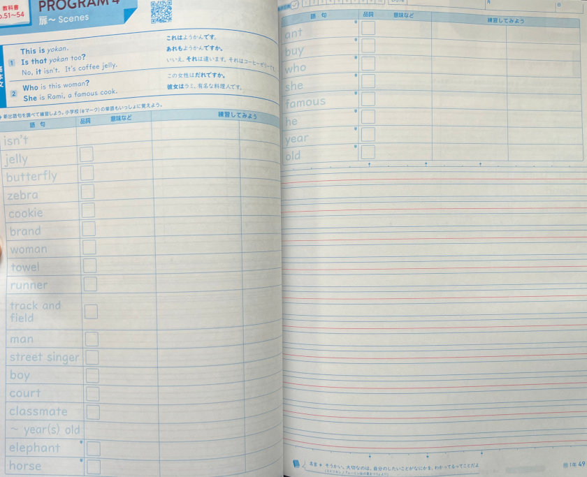 教科書にぴったりな、シンプルな誌面で使いやすいノートです。なぞり書きもできる単語欄になっております。