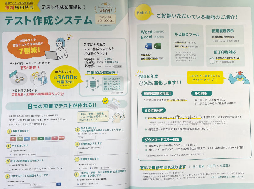 ■定期テスト、確認テストなどにご活用できる『テスト作成システム』