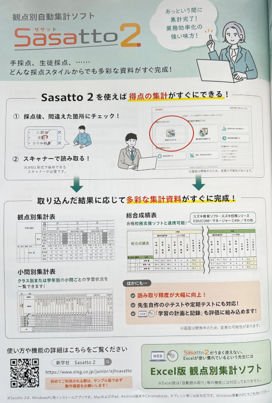 ・得点集計がすぐにできる、観点別自動集計ソフト『Sasatto2(ササット2)』