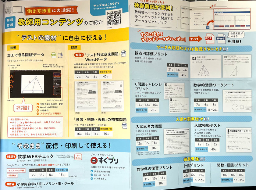 ・テスト素材・そのまま配信印刷して使えるプリント多数。図版データ、復習プリント、計算プリント、関数図形プリントなど