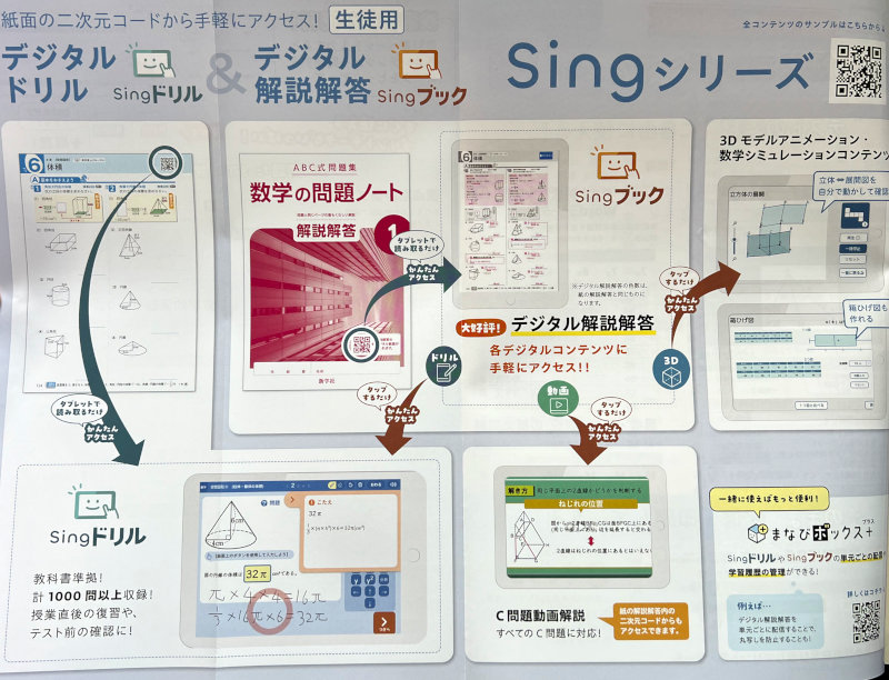 タブレットで読み込むだけで使えるワークの単元に対応したデジタルドリル、デジタル解説解答、動画解説など