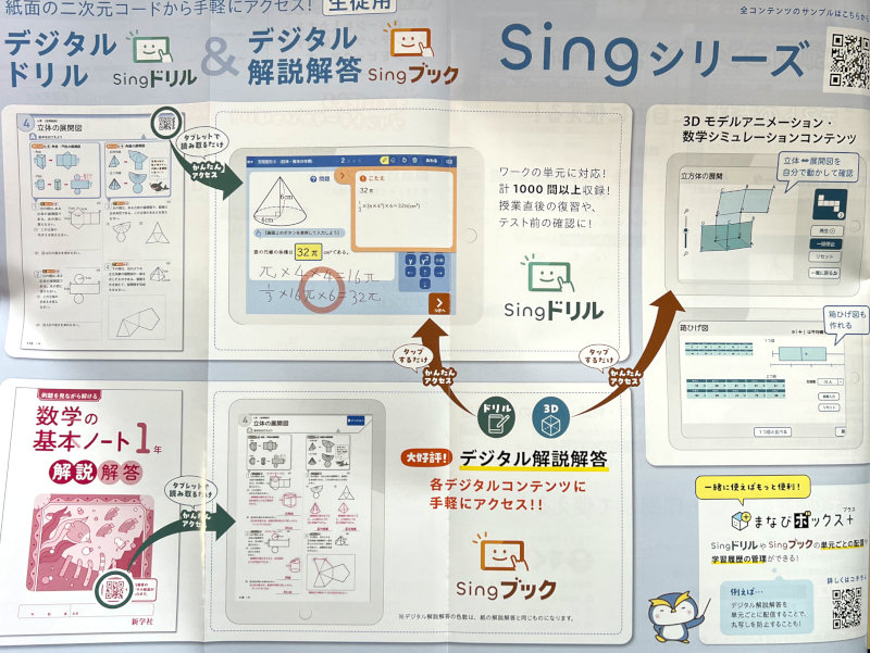 タブレットで読み込むだけで使えるワークの単元に対応したデジタルドリル、デジタル解説解答、動画解説など