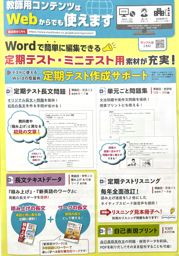 ■教師用コンテンツ内容(定期テスト長文問題、自己表現プリントほか)