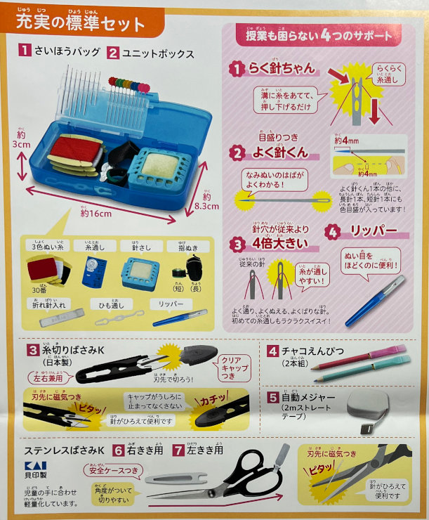 裁縫用具の使い方をしっかり確認できるらくらくガイド